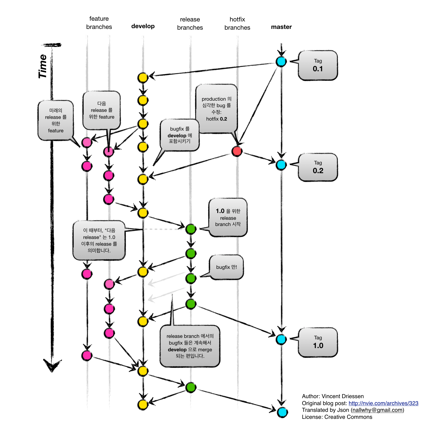 저 그림의 내용을 브랜치별 말로 설명하면 그렇습니다.