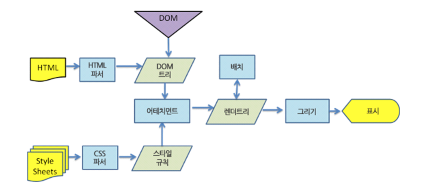 예를들어 자바스크립트의 바인딩을 이용해 동적으로 요소를 추가하거나 배치에 해당하는 요소를 변경하게 되면 이때에 렌더트리에서 재배치과정이 일어납니다.