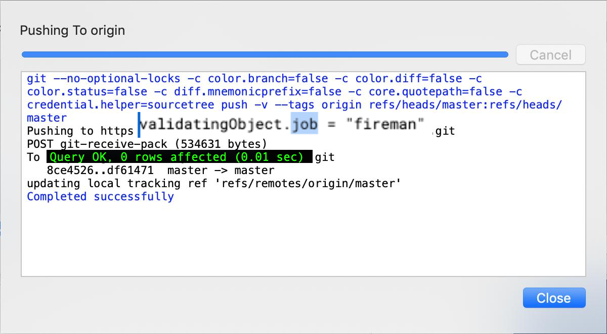 - 그리고 다시 소스트리에서 Push를 해보면 다시 패스워드 입력창이 뜹니다. 제대로 패스워드 입력하고 확인 누르면 아래와 같이 정상적으로 푸시되었다.