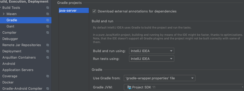 해결방법은 Settings > Build,Execution,Deployment > Build Tools > Gradle > "Run tests using: IntelliJ IDEA" 로 변경해주면 된다.