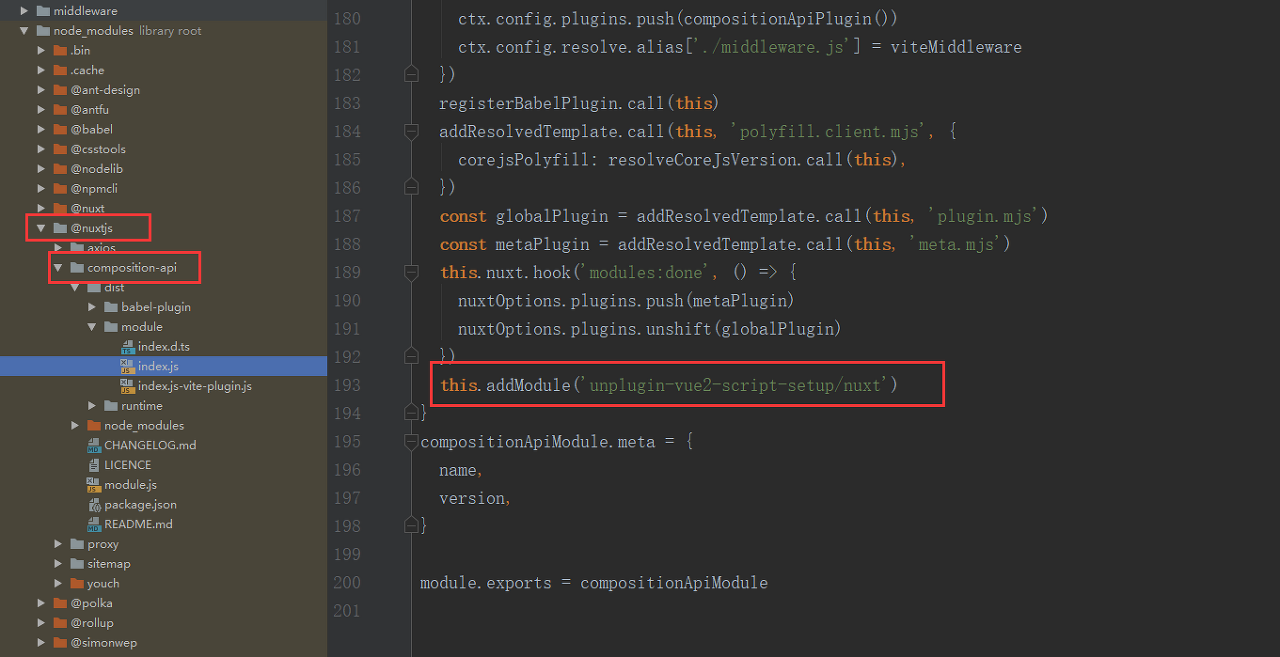 처음 이 에러가 났을때 unplugin-vue2-script-setup이 없는줄 알고 인스톨을 해보고 다시 실행해봐도 해결되지 않는것이다.. 패키지를 까보기 시작했다. 아래 부분에 대한 에러인데...